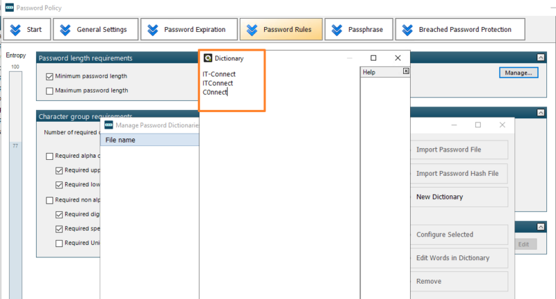 - Creation of an unlimited, custom dictionary of blocked words and passwords specific to your organization