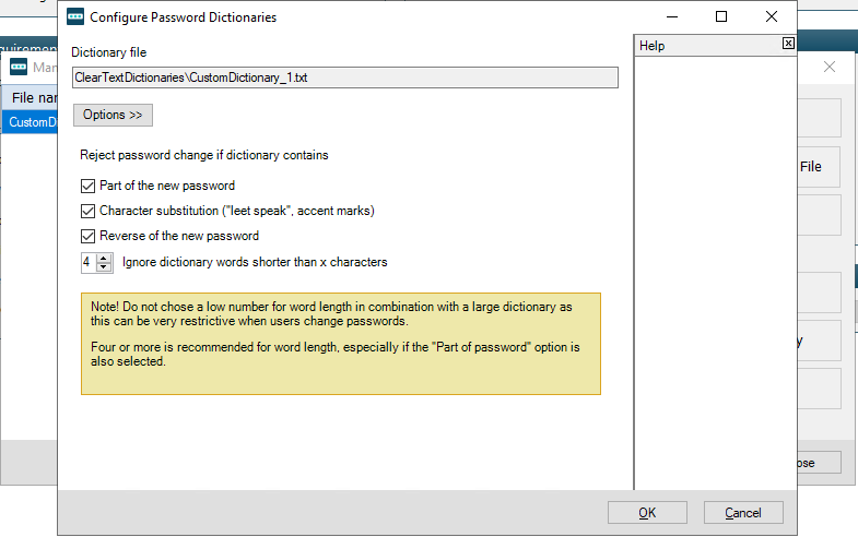 This solution makes it possible to build a comprehensive dictionary of words and passwords to be blocked. The entries you add to this list should, of course, include those identified in the scenarios mentioned earlier: poor password creation habits, account resets, as well as passwords already known to be compromised. You should also consider including weak variations of these passwords in your blocklist.
